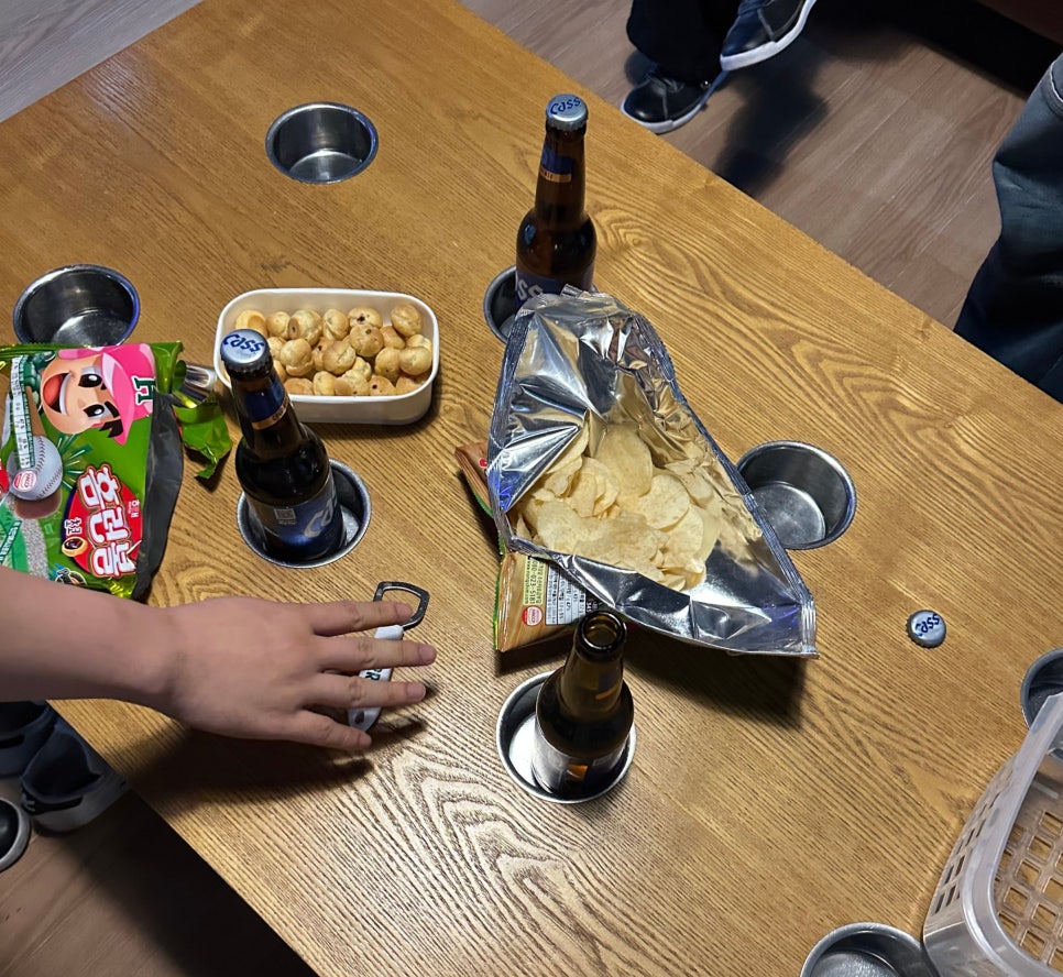 테이블마다 각자 먹을 술과 음료를 시켜서