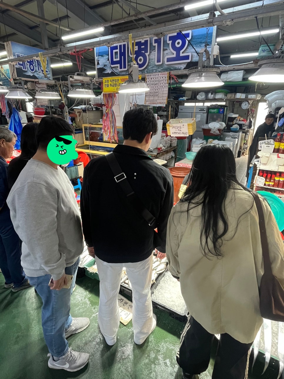 다 같이 내려서 수산시장 구경도 하고