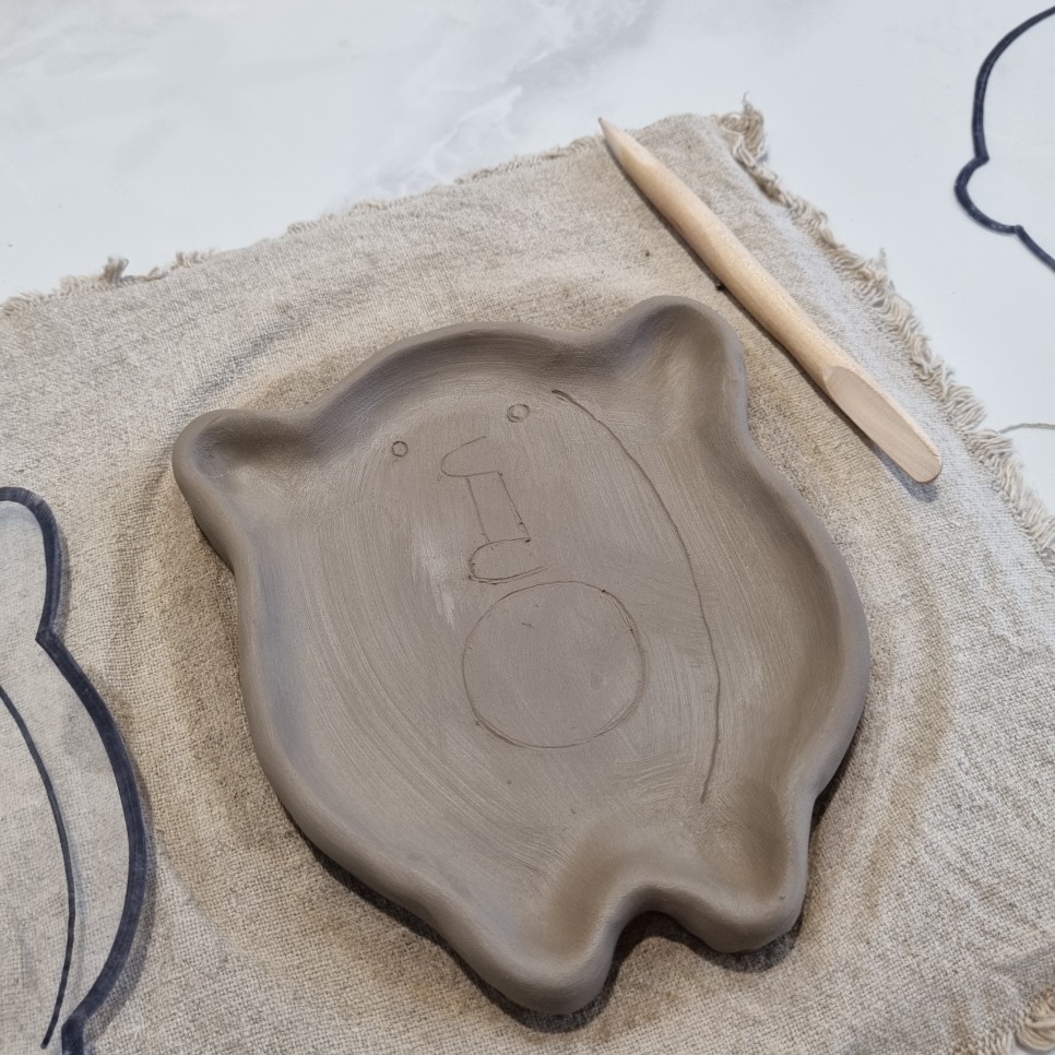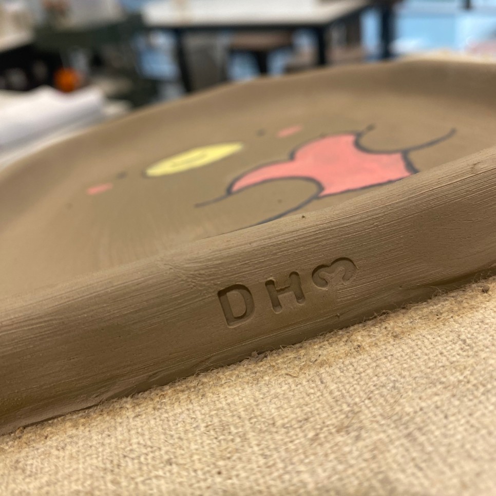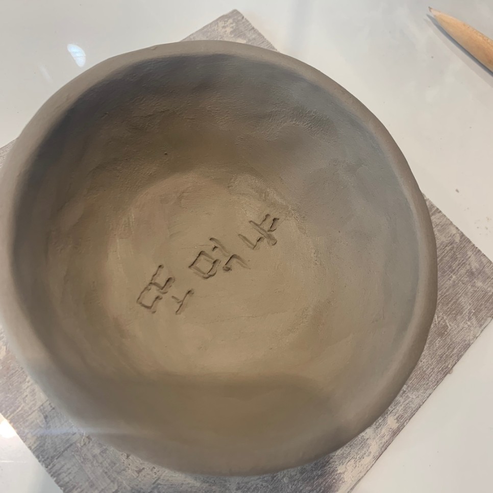 이니셜 도장도 그릇에 찍으면 수업이 끝나게 돼요!