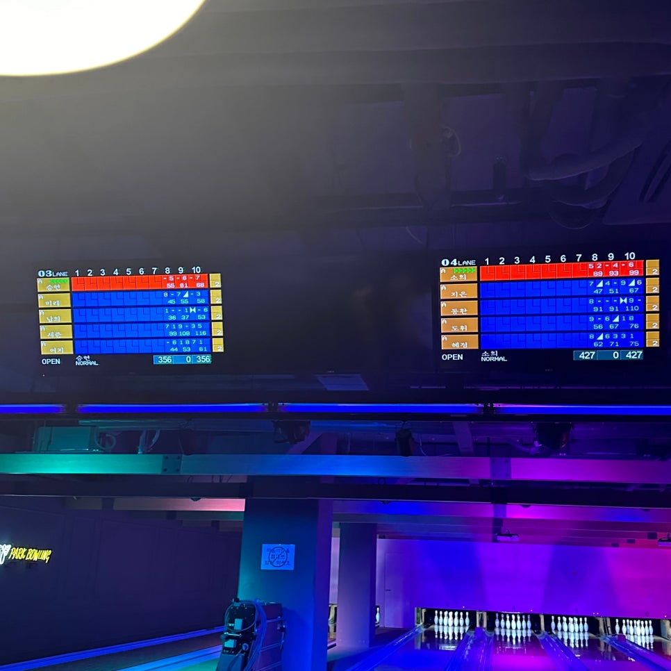두 번째 게임 시작할 땐 볼링장 내부 조명도 바뀌어서